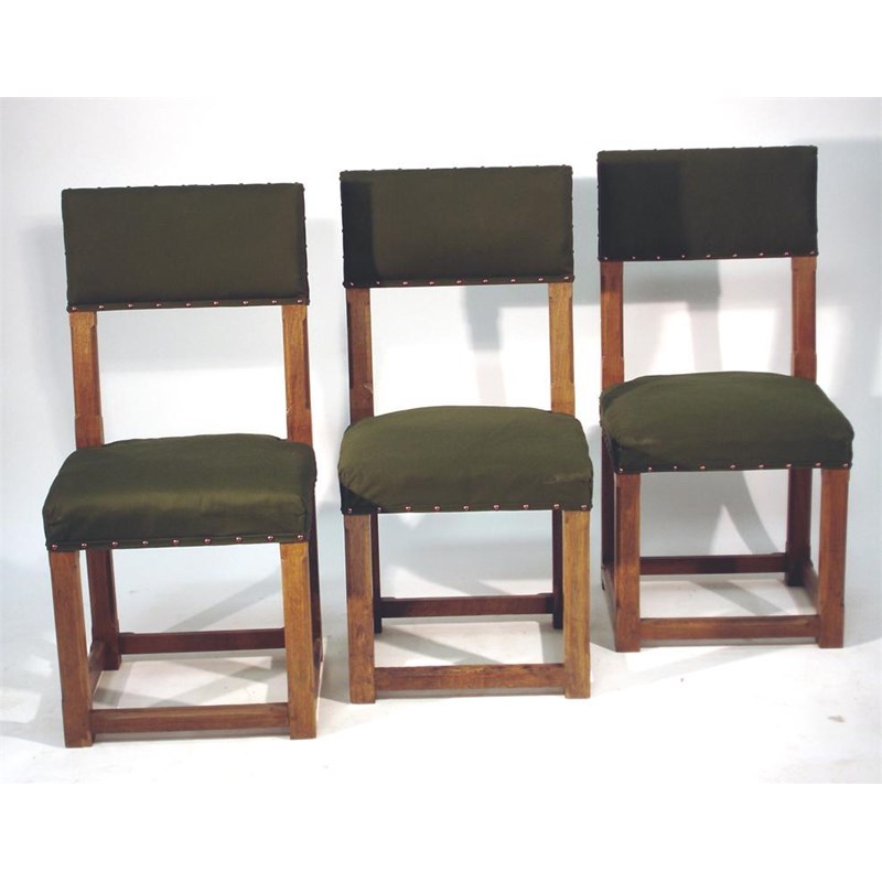 Six oak chairs in the style of Gordon Russell stamped, 95cm. high.