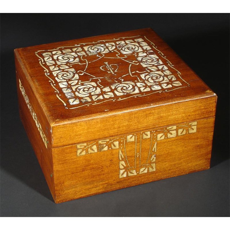 A Scottish Arts and Crafts gessoed wood box square section with hinged cover, painted inscription From CMH Christmas 1910 20cm. square