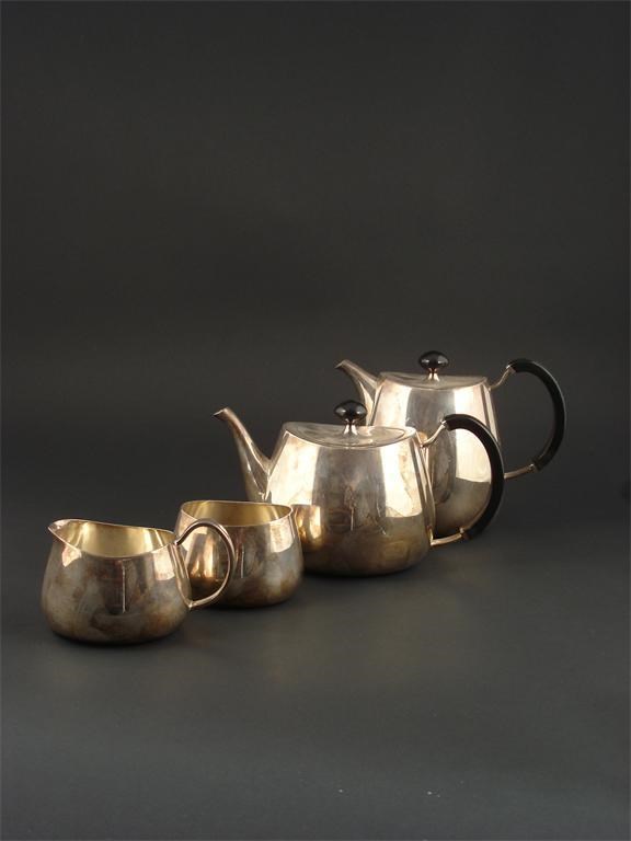 A Walker & Hall Pride electroplated four piece tea set designed by David Mellor, model no.53722, and three extra items stamped marks hot-water 17cm. high