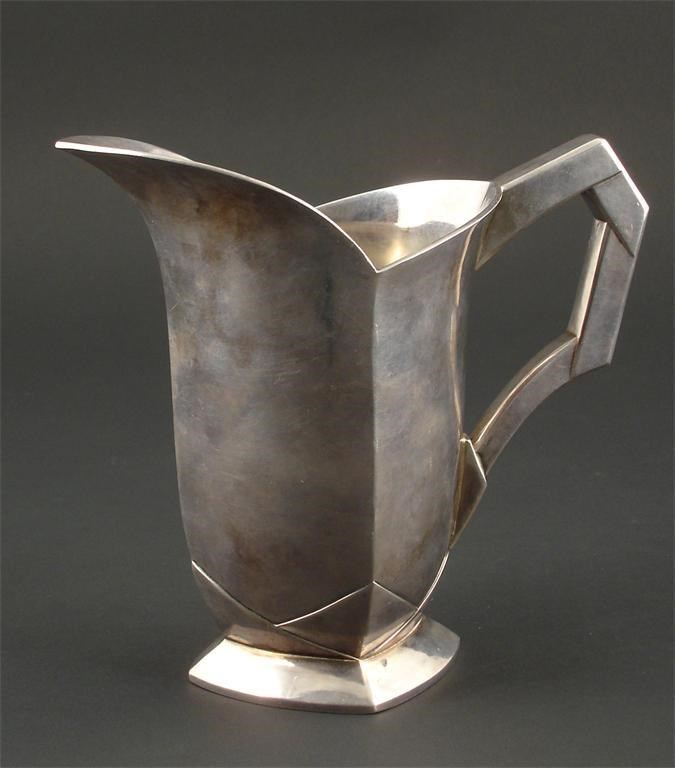 A Christofle polished pewter water jug designed by Louis Sue, model no.5978 stamped number 18cm. high Literature Modern Art of Metalwork, Brohan Museum, page 389 catalogue number 351 for a comparable example
