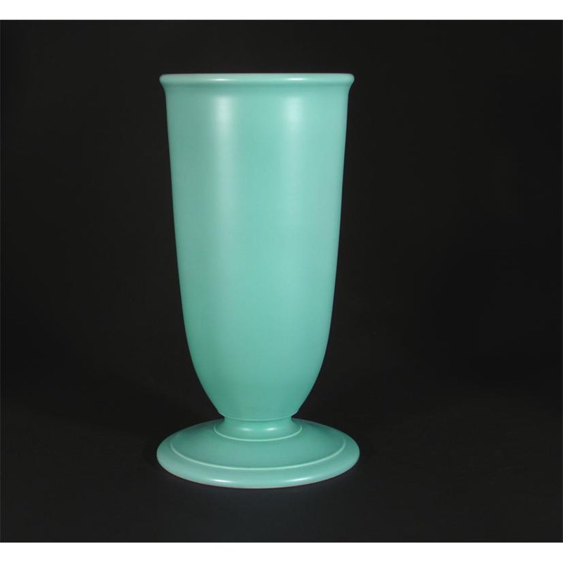A Wedgwood earthenware vase designed by Keith Murray, shape no. 3987, covered in a matt blue glaze impressed marks, printed factory mark 31cm. high