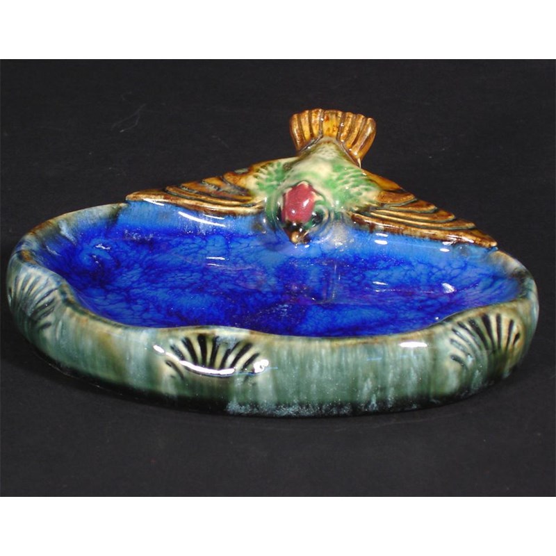 A Doulton Lambeth stoneware bibelot the rim modelled with a bird, in colours impressed marks 14.5cm. wide.
