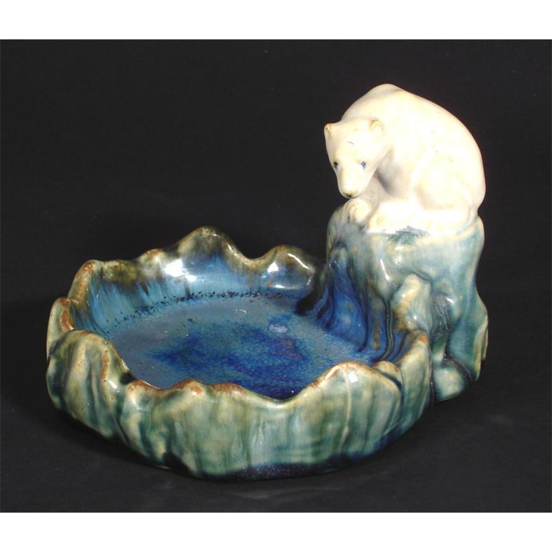 A Doulton Lambeth stoneware bibelot modelled with a polar bear, in colours impressed factory marks 15cm. wide.