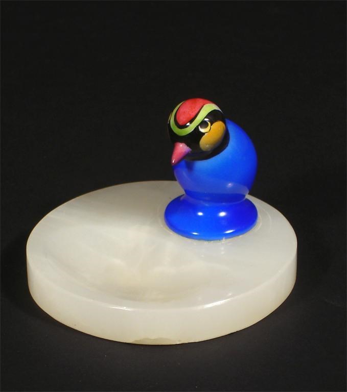 'Comical Bird' A rare Royal Doulton miniature animal on circular alabaster base, figure 4cm. high
