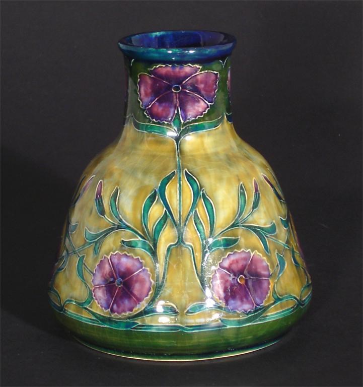 A Morrisware vase designed by George Cartlidge, pattern no. C63-1, painted in colours printed factory mark, painted facsimile signature, restored top rim 15.5cm. high