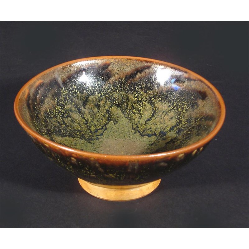 A Charles Vyse stoneware bowl covered inside and out with a temmoku glaze incised C Vyse Chelsea 12.5cm. diam.