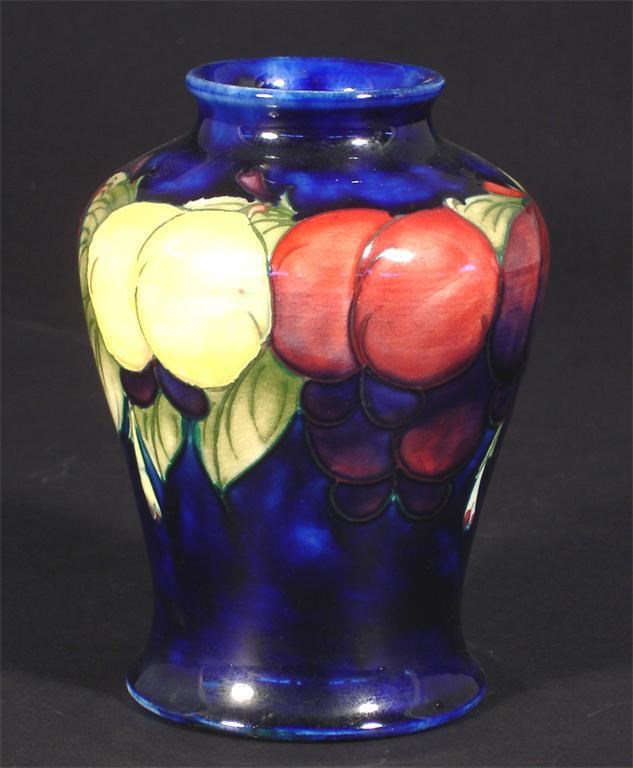 'Wisteria' a Moorcroft Pottery vase designed by William Moorcroft, impressed marks, painted blue signature 14cm. high