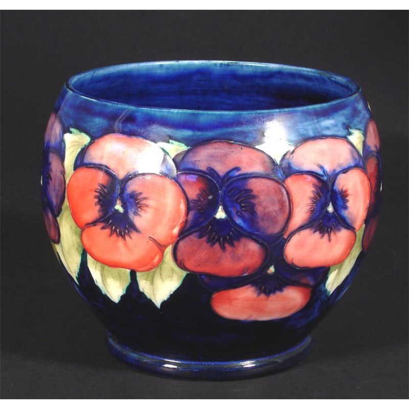 'Pansy' A Moorcroft Pottery vase designed by William Moorcroft impressed marks, painted blue signature 13cm. high