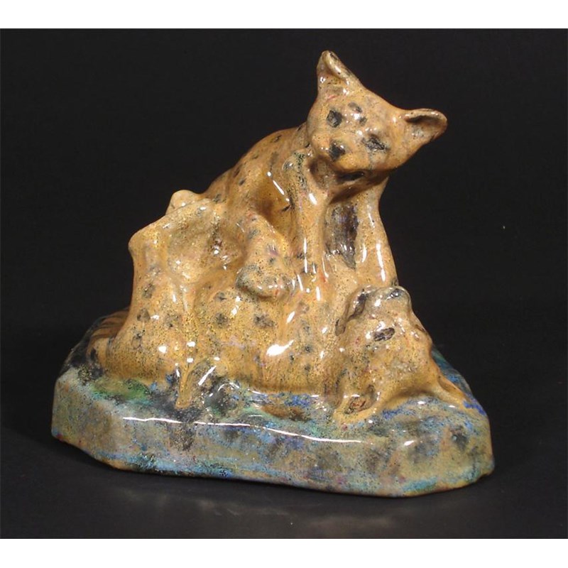 'Lion Cubs' a Stella Crofts pottery figure group dated 1928, modelled as two cubs playing, incised Stella R Crofts, Lion Cubs 1928 17cm. wide.