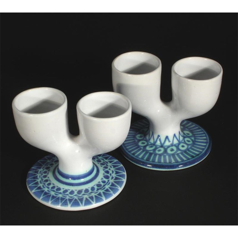 Two Troika Pottery double egg cups, painted in blue on a white ground printed mark 9cm. high Literature Carol Cashmore Troika Pottery Private Press plate 32 for three similar double egg cups illustrated