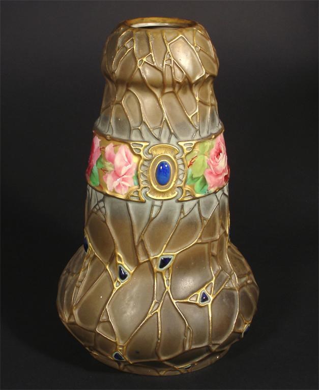 A Turn, Vienna Art Nouveay vase modelled in low relief and painted with rose flowers, in colours impressed, printed and painted factory marks 30cm. high