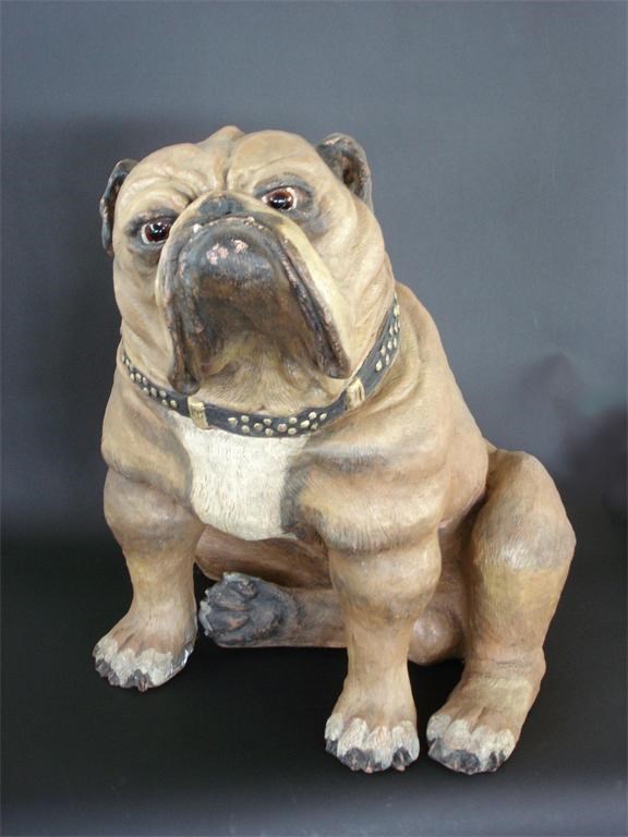 A life size Austrian terracotta model of a bulldog painted in colours unmarked 59cm. high