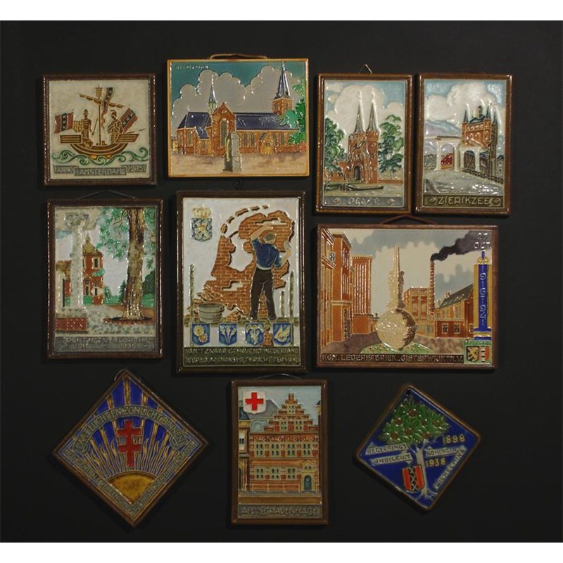 A collection of Dutch Delft tiles tubeline decorated with various Dutch scenes impressed marks
