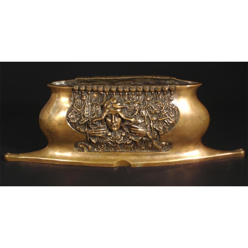 An Art Nouveau bronze centrepiece cast from a model by Charles Korschann, with an Art Nouveau maiden amongst opium poppy seadheads signed in the bronze 40cm. wide.