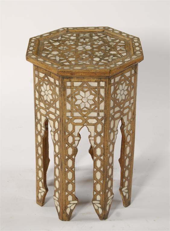 A Moroccan mother of pearl and pewter inlaid side table, octagonal section unsigned 21.75 inches (55 cm.) high