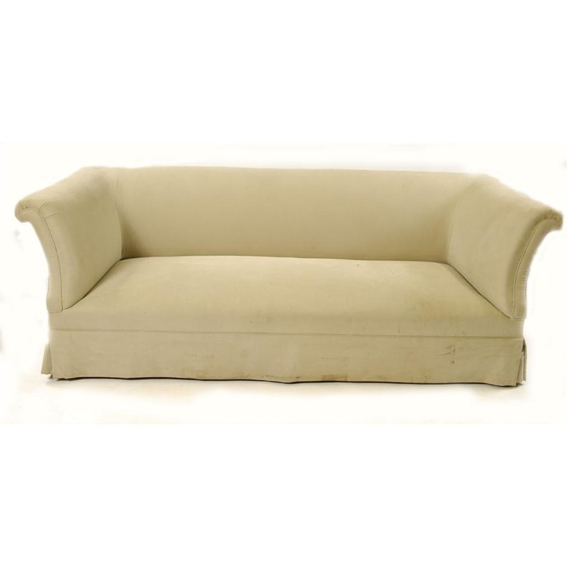 A large settee, upholstered in cream, 97.5 inches (248 cm.)