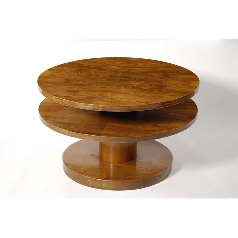 An Art Deco two tier coffee table possibly Heal's, circular section, 21 inches high, 34.75 inch diam. (53.5 cm. high, 88.5 cm. diam)