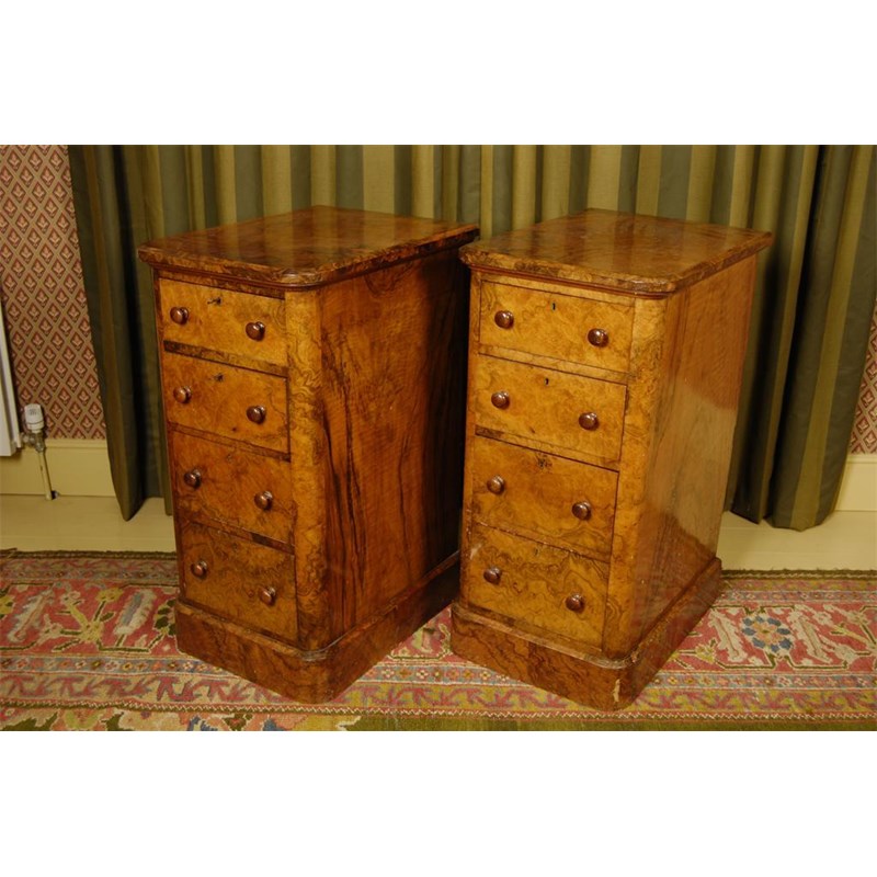 A pair of Victorian figured walnut veneer chests four graduated drawers, with T Turner, London locks, 34.5 inches (88cm) high. (2)