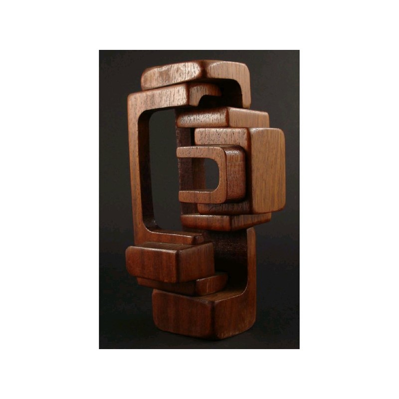 A Brian Wilsher wooden sculpture abstract inter-connecting forms signed in pencil, dated 1978 28.5cm. high