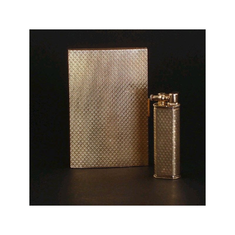 A Dunhill, Paris gold lighter and cigarette case stamped Dunhill, Paris 9cm. high