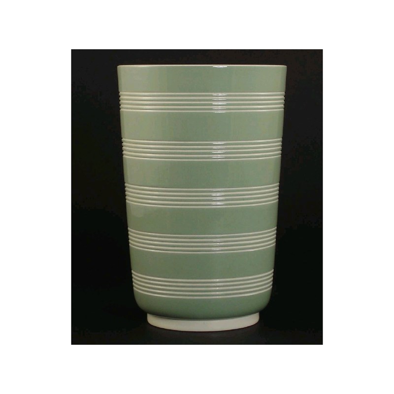A Wedgwood celadon and white vase designed by Keith Murray, shape no.4217 printed mark, km monogram 21cm. high