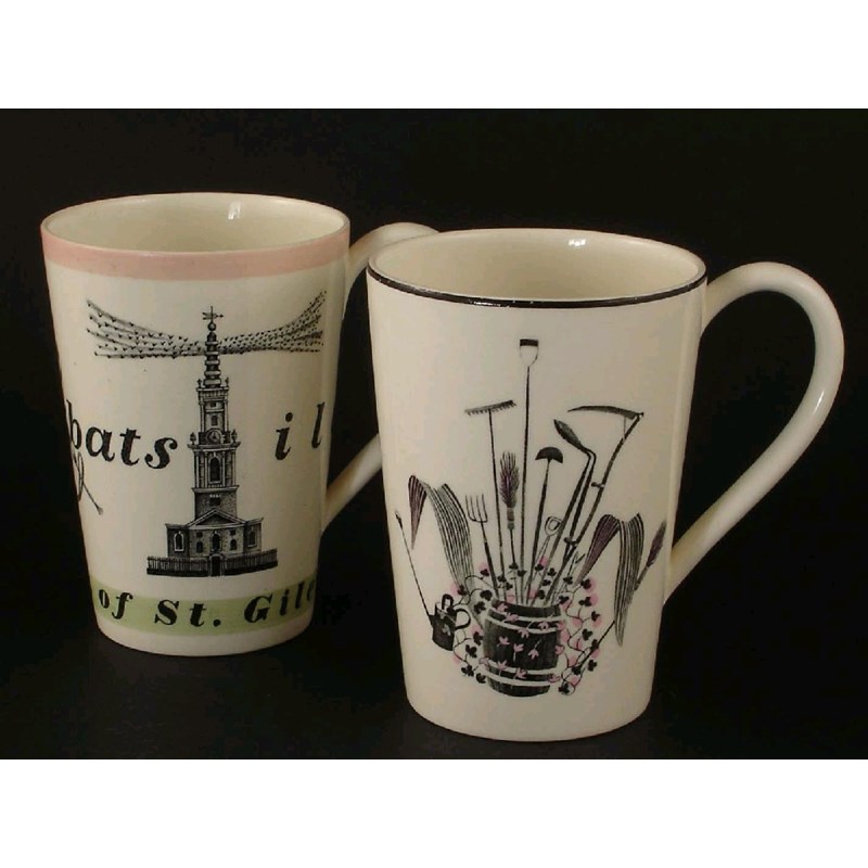 'Garden' a Wedgwood cup designed by Eric Ravilious,and a Richard Guyatt mug printed marks, small chip to Ravilious mug 11cm. high