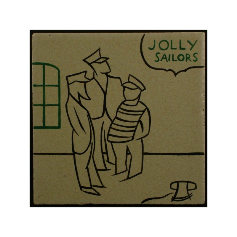 A Carter's Poole tile designed by Edward Bawden, decorated with three sailors chatting minor nicks 13cm. square