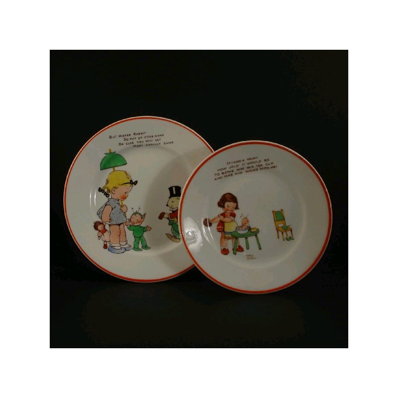 Two Shelley nursery plates designed by Mabel Lucie Attwell printed marks largest 17.5cm. diam.