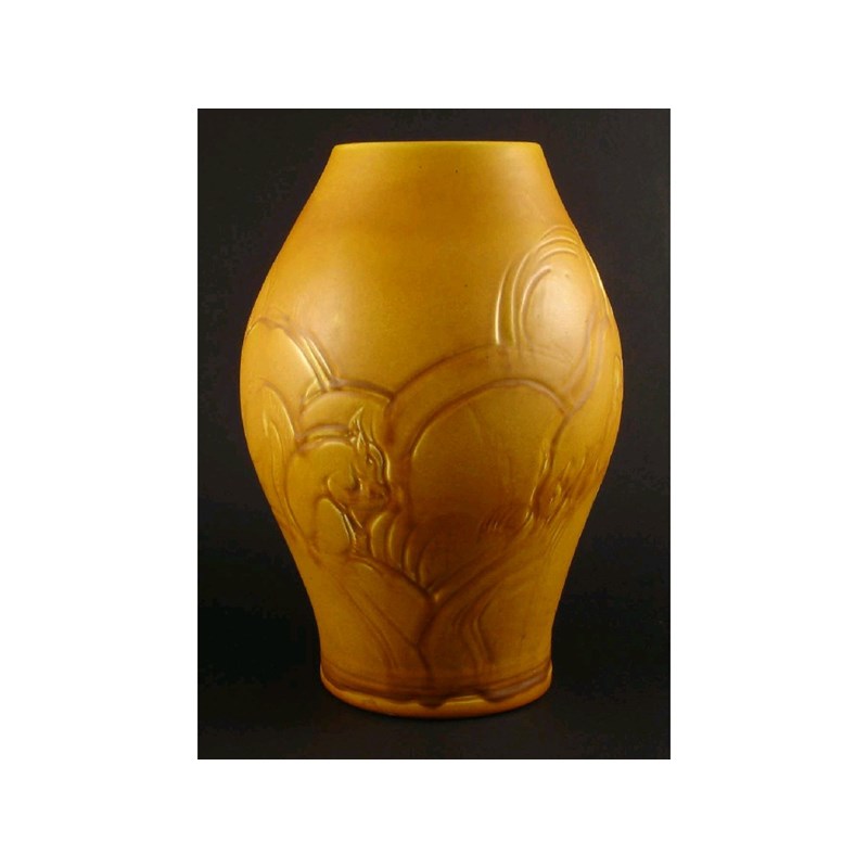 A Susie Cooper carved vase incised with a squirrel, incised Susie Cooper, 1933 30cm. high