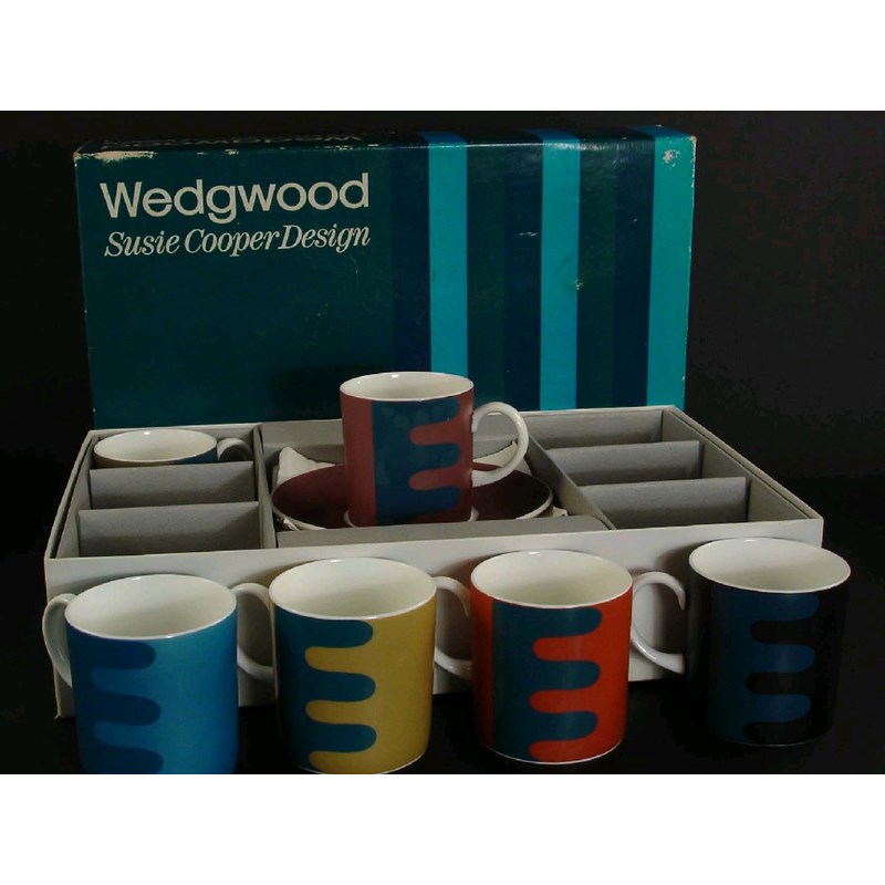 'Pennant' a Wedgwood coffee set for six designed by Susie Cooper, in original fitted box printed marks