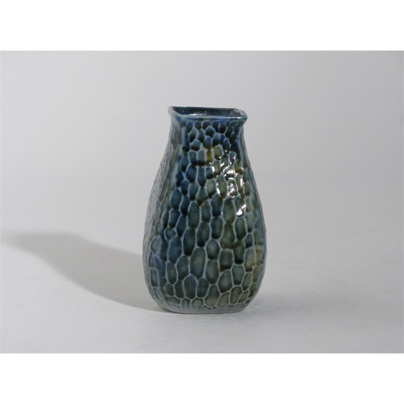 A Martin Brothers stoneware gourd vase by Robert Wallace Martin, swollen, square section, slip decorated with graduated green to blue scales incised R W Martin & Bros, Southall 13.5cm. high