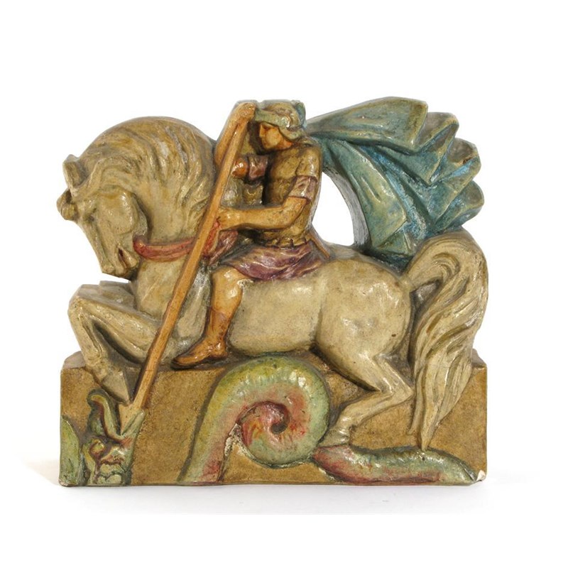'St George' a Compton Art Pottery panel painted in colours, unsigned, chips 20.5cm. wide