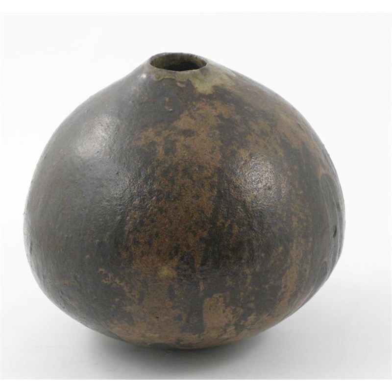 an early stoneware ovoid vase, circa 1961, with circular aperture, glazed dark brown and rust impressed seal mark 23cm. high