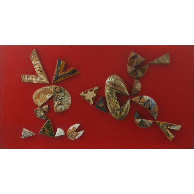 An abstract Pottery wall panel, made of shards of pots, framed unsigned 91 x 51cm.
