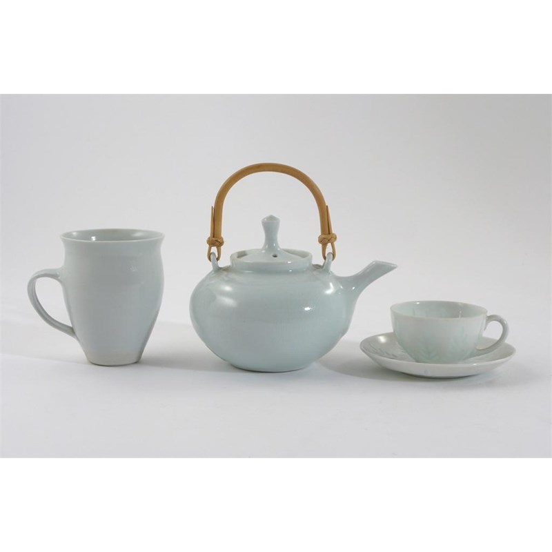 a porcelain teapot and cover, glazed white, a Mary Rich mug and an Arabia part coffee set impressed marks teapot 8cm. high