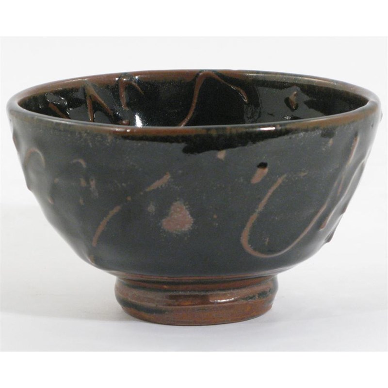 a stoneware bowl covered in a tenmoku glaze, and ten other Japanese studio pottery items unsigned, hairline crack 15cm. diam.