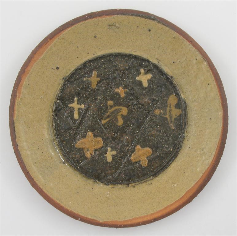 a Bojewyan Pottery coal-fired slip decorated earthenware charger, circa 1979-1982, impressed seal marks 33.5cm. diam.