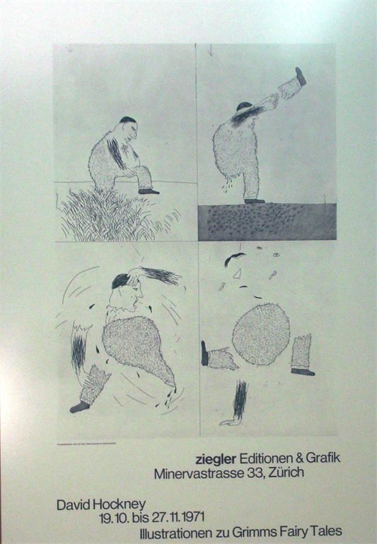 'Rumpelstilzchen, Grimms Fairy Tales - David Hockney for Ziegler Editionen & Grafik' a poster designed by David Hockney for Ziegler Editionen & Grafik, 1971 framed image size 91 x 63.5cm.