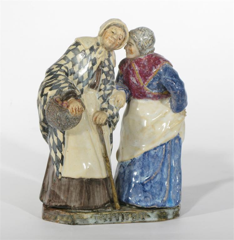 'The Tit Bit' a figure group by G Wallers modelled as two ladies gossiping, glazed in colours incised title and signature to base 17.5cm. high