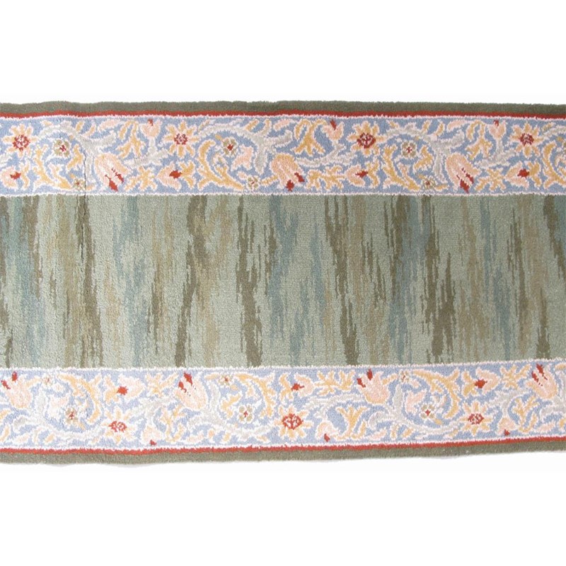 Two lengths of carpet designed by William Morris decorated with a border of scrolling flowers, and streaked green ground 60 x 580cm and 60 x 440cm. Literature Malcolm Haslam Arts and Crafts Carpets David Black, page 50 and 52-53 for this design illustrated on a Hammersmith carpet