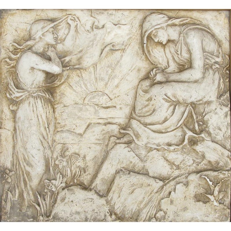 'Demeter and Persephone' a plaster panel by Ellen Mary Rope square, modelled in low relief, in oak frame 38.5 x 36cm. Provenance Admiral Talbot Carpenter, Kiplin Hall Yorkshire Literature Ellen Mary Rope The Poet Sculptor John Barnes Fine Arts and H Blairman & Sons Ltd, 1997 catalogue number 4 illustrated page 23 for this panel in original frame. Rope first showed this relief of Demeter and Persephone at the Ipswich Art Club in January 1889 and also the RA Summer Exhibition.