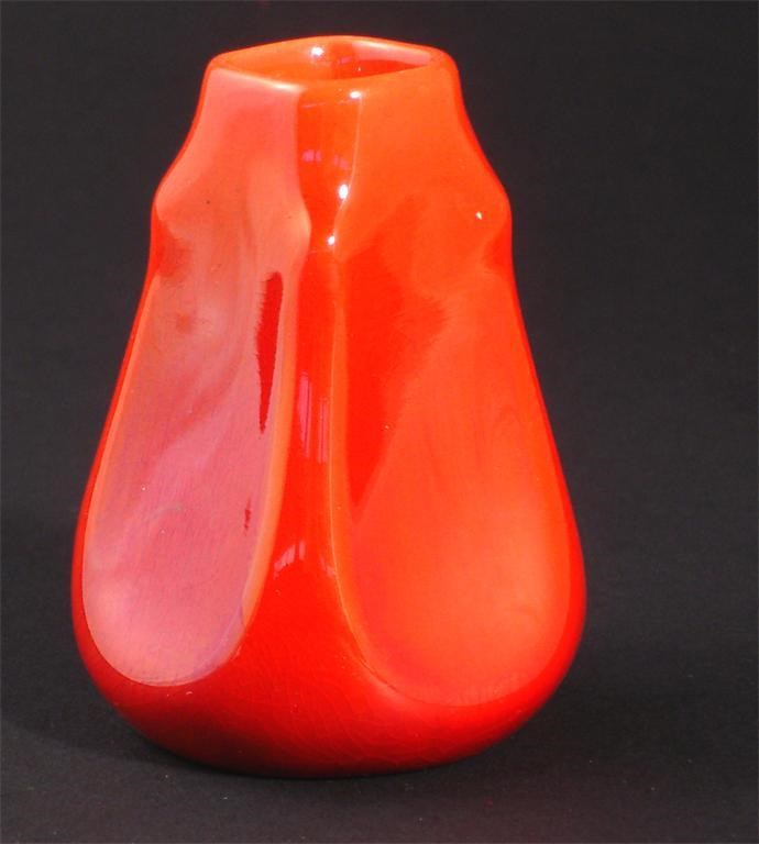A Pilkington's Lancastrian miniature vase gourd form, covered in a ruby red glaze impressed mark, collection paper label 7.5cm. high Provenance The Bill Coles Collection