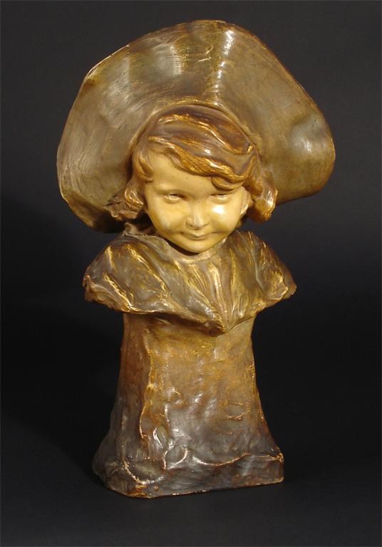 A Goldscheider Art Nouveau bust of a girl model no. 3013, impressed marks, facsimile signature 32cm. high
