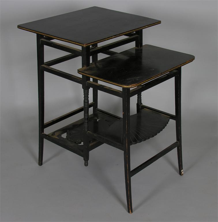 An Aesthetic movement ebonised wood table split level with carved decoration unmarked