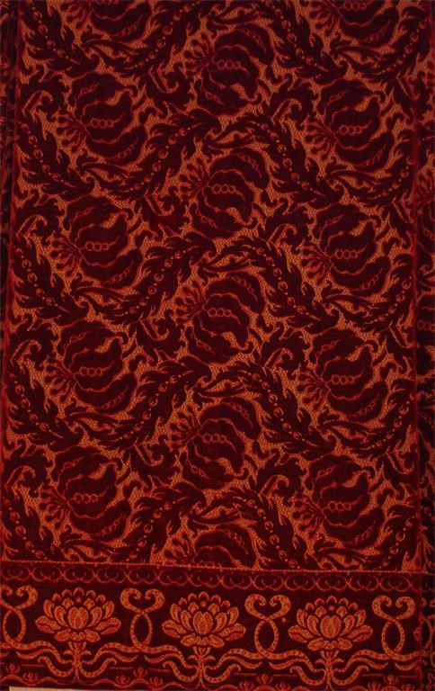 A chenille tablecloth in the style of Lewis F Day, decorated with a repeat of Turk's Cap lilies unmarked