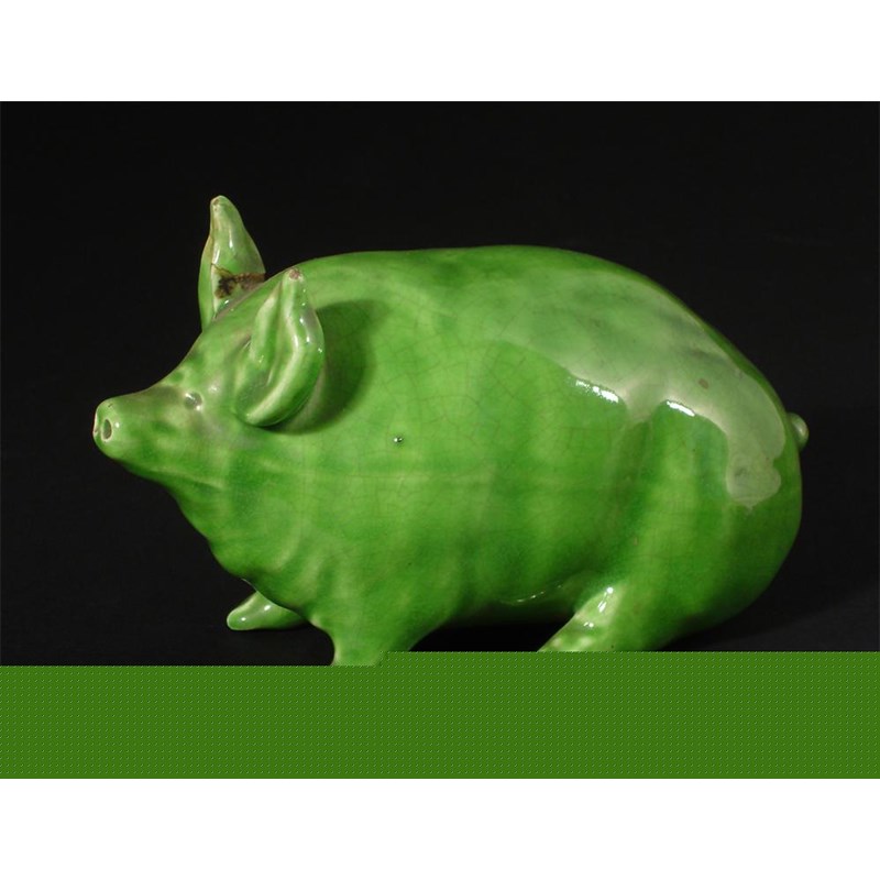 A Wemyss Pottery pig covered in a green glaze impressed Wemyss