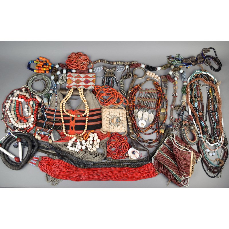 A collection of hardstone and glass bead necklaces Naga and Africa and shell