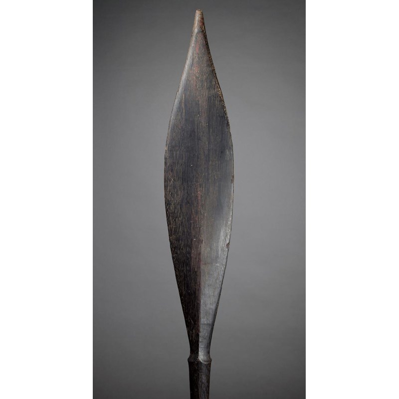 A Melanesia paddle club probably Papua New Guinea palmwood with a leaf shape blade with a swollen...