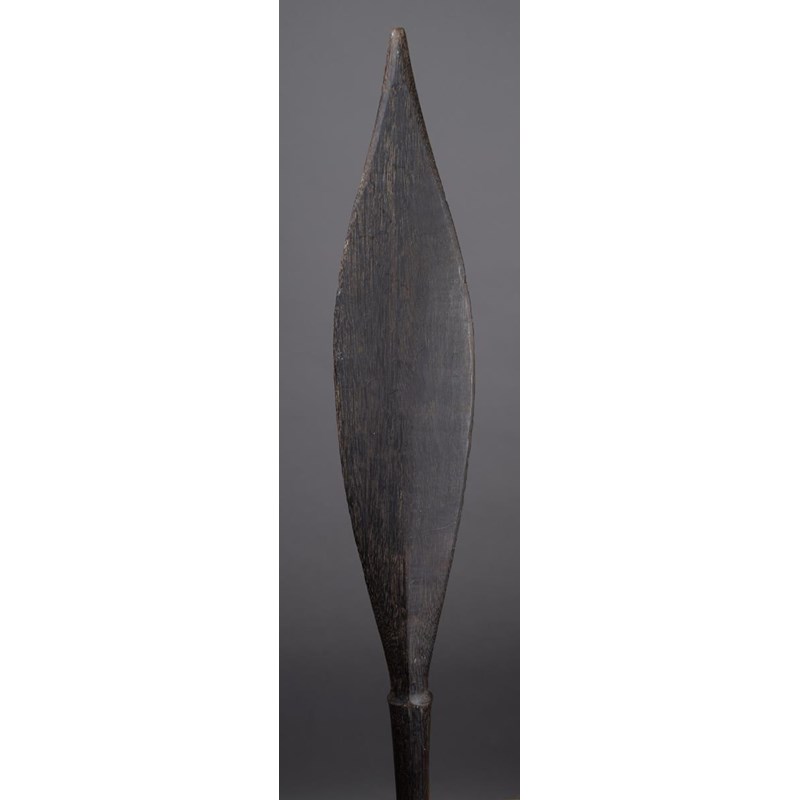palmwood with a leaf shape blade with a swollen tip, the handle terminal reduced,
