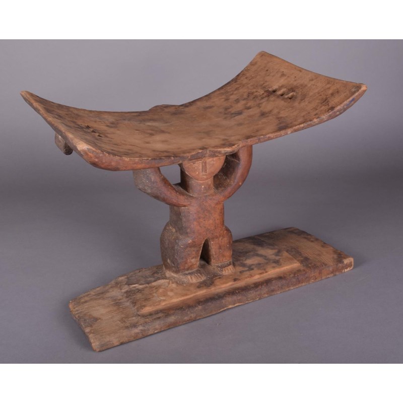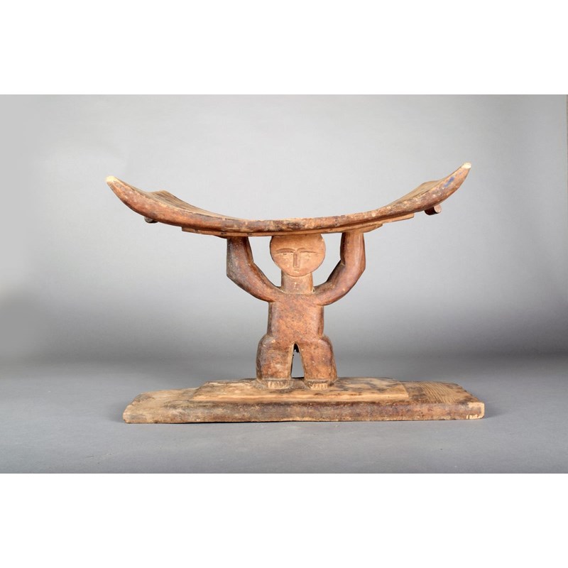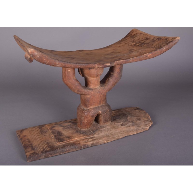 An Ashanti stool, Ghana, with a standing figure support, 32.5cm high.